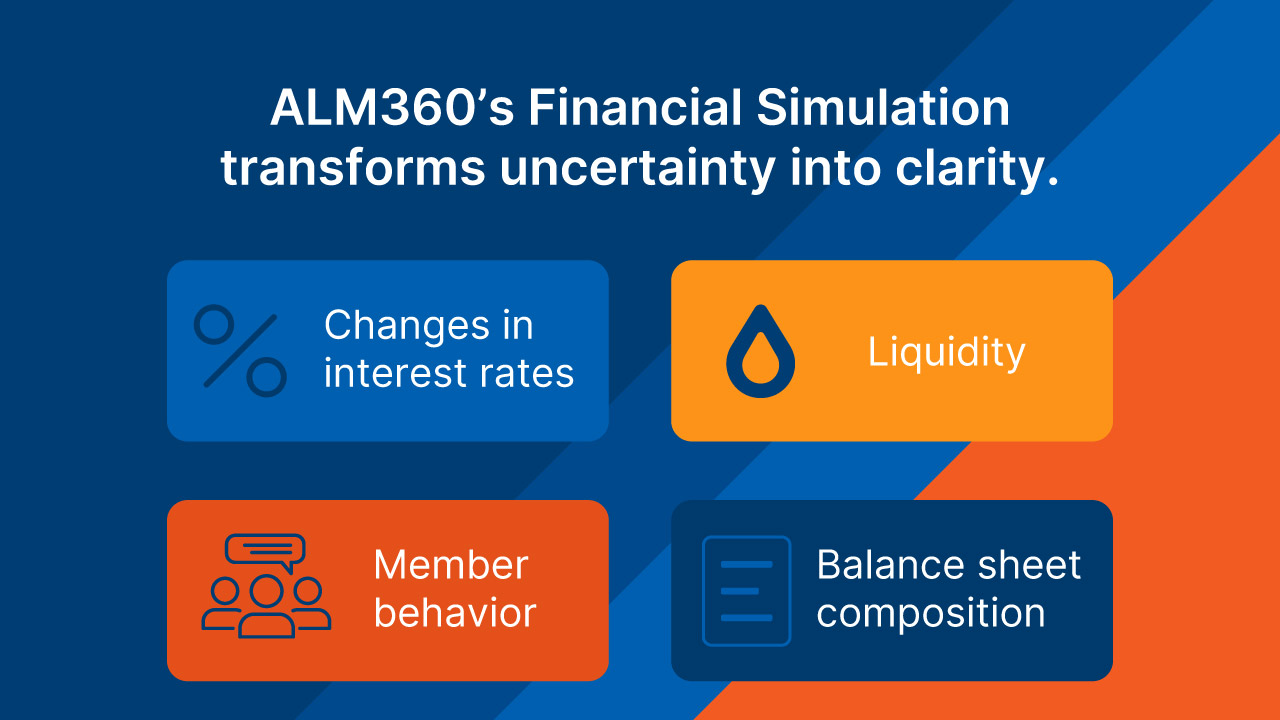 Credit unions can model interest rate changes, liquidity shocks, deposit runoff, loan growth, economic downturns, and custom stress events.